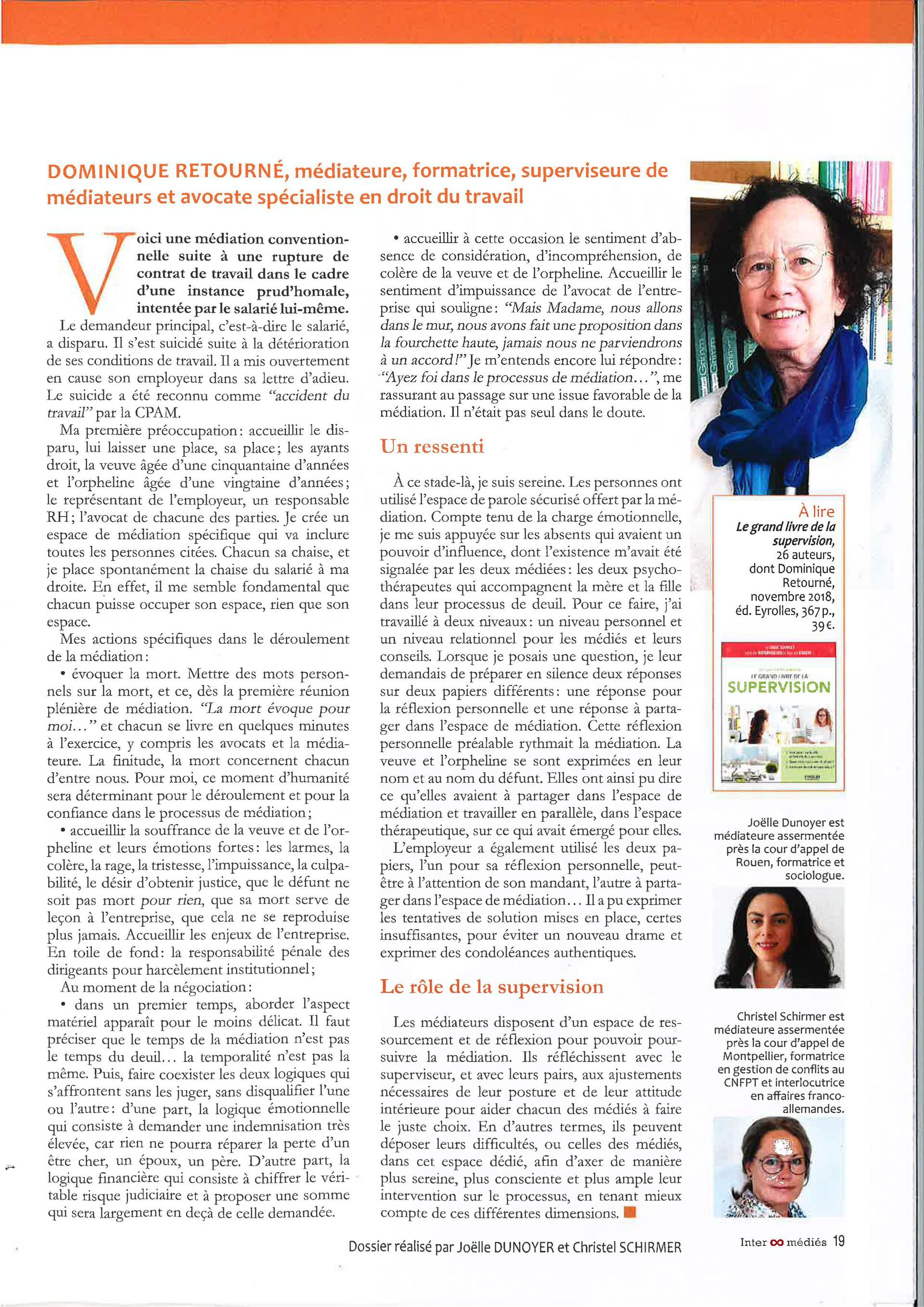 Découvrez également l'article de Mme Dominique Rétourné médiatrice et superviseur de médiateurs dans la revue Psycho-droit